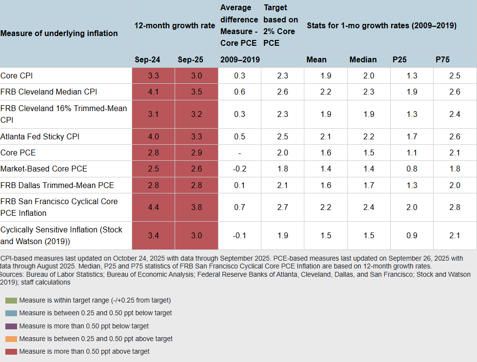 EconCurrents follows the Federal Reserve Bank of Atlanta’s Underlying Inflation Dashboard, which uses data from the US Bureau of Economic Analysis, the Federal Reserve Bank of San Francisco, and the Federal Reserve Bank of Dallas. Inflation has modestly declined earlier this year, but interestingly, the downward movement in some of the measures of inflation released since September 2024 was matched by the upward movement of others. Inflationary pressures remain high, and inflation continues to impact any economic forecast.